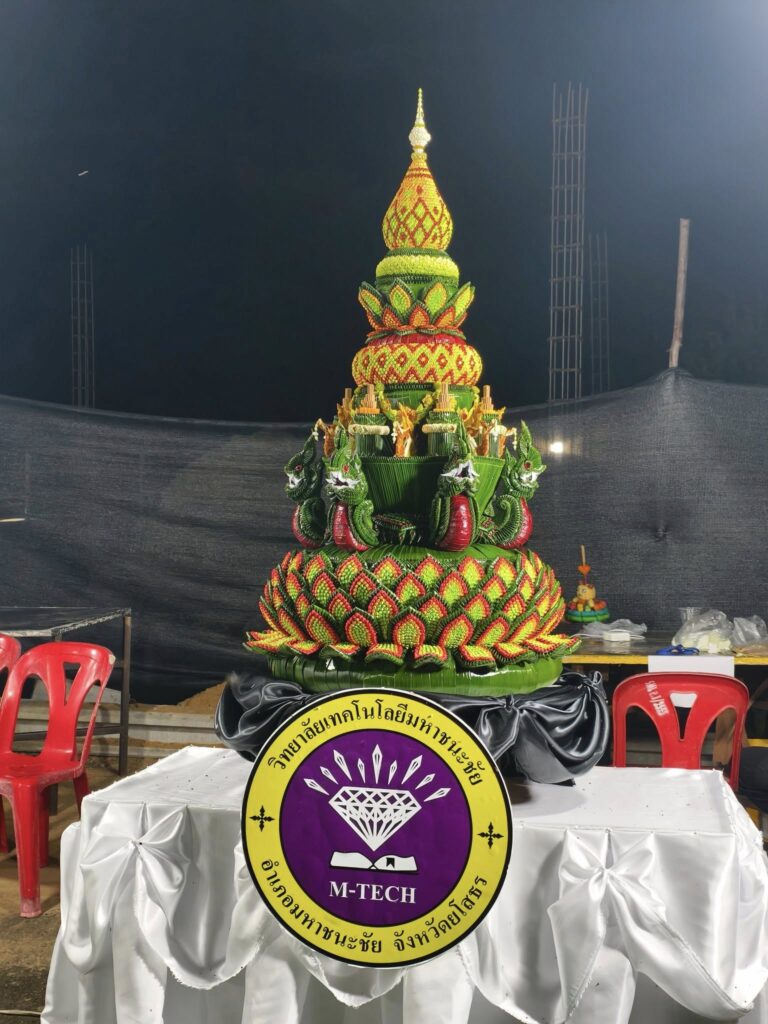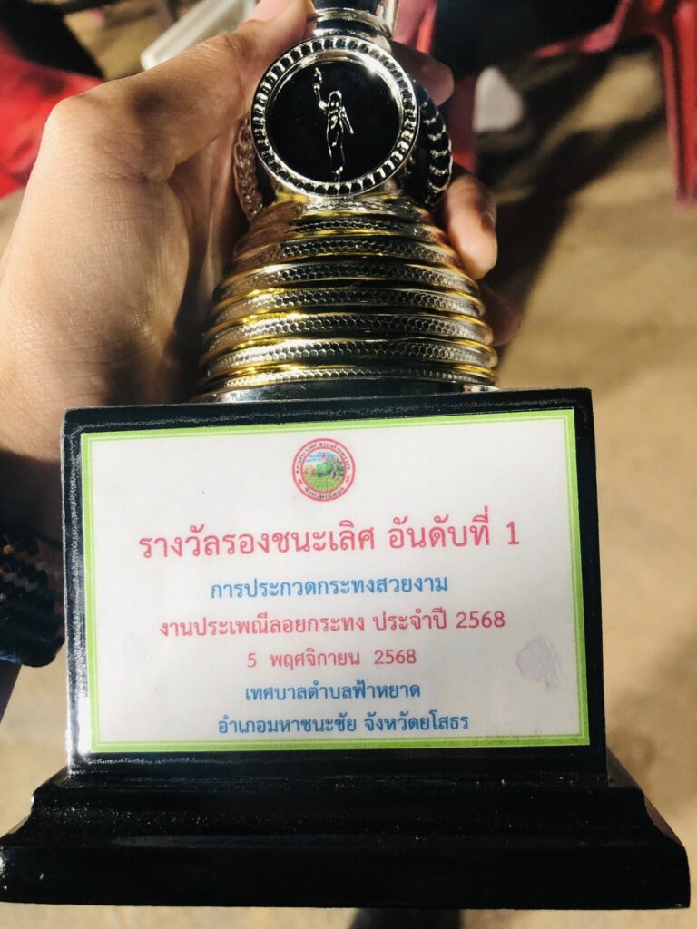 5 พฤศจิกายน 2568 ดร.รัญญา ชุปวา ผู้อำนวยการวิทยาลัยเทคโนโลยีมหาชนะชัย มอบหมายให้นายอิศรานุวัฒน์ บุญลี รองผู้อำนวยการฝ่ายกิจการนักเรียน นักศึกษา นำตัวแทนครูและบุคลากรทางการศึกษา ร่วมงานประเพณีลอยกระทงอำเภอมหาชนะชัย ประจำปี 2568 โดยเข้าร่วมการประกวดกระทงสวยงาม ณ ลานอเนกประสงค์เทศบาลตำบลฟ้าหยาด อำเภอมหาชนะชัย จังหวัดยโสธร ในการนี้ นางสาวณัฐจรีย์ ไชยสาคร รองผู้อำนวยการฝ่ายวิชาการ ปฏิบัติหน้าที่รองประธานกรรมการตัดสินการประกวดนางนพมาศ งานประเพณีดังกล่าว