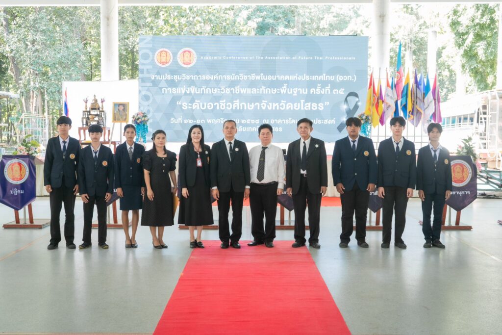 12 พฤศจิกายน 2568 ดร.รัญญา ชุปวา ผู้อำนวยการวิทยาลัยเทคโนโลยีมหาชนะชัย พร้อมด้วย นางจุฬาลักษณ์ หล้าอำพันธ์ ที่ปรึกษาองค์การฯ และนายกองค์การนักวิชาชีพในอนาคตแห่งประเทศไทยวิทยาลัยเทคโนโลยีมหาชนะชัยและคณะ ร่วมงานประชุมวิชาการองค์การนักวิชาชีพในอนาคตแห่งประเทศไทย การแข่งขันทักษะวิชาชีพ ทักษะพื้นฐาน ประจำปีการศึกษา 2568 ระดับจังหวัดยโสธร ณ วิทยาลัยเทคนิคยโสธร สถาบันการอาชีวศึกษาภาคตะวันออกเฉียงเหนือ 4